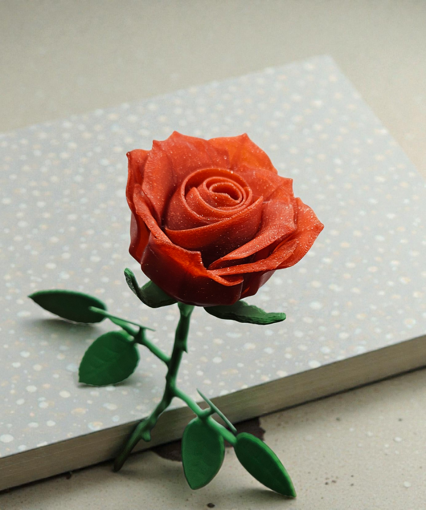 Stems are supplied with and without leaves are random. If you have a preference, please leave a note at checkout. Meet the 3D Printed Eternal Rose Flower, the bloom that won’t wilt, frown, or ask for water! Comes with a stem (leaves may or may not be included). Want it in a custom color? Just holler at checkout! Who knew forever could be this fab? 🌹✨